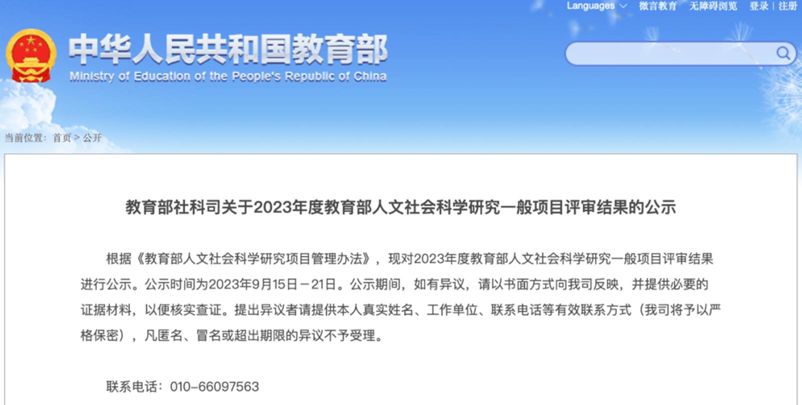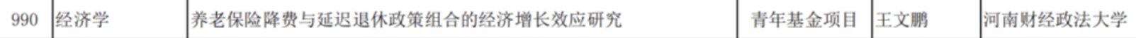 根据教育部社科司公示的2023年度教育部人文社会科学研究一般项目评审结果的公示,公司教师王文鹏博士主持申报的青年基金项目《养老保险降费与延迟退休政策组合的经济增长效应研究》获批立项。