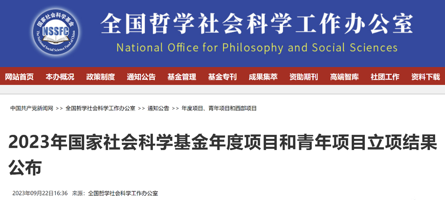 科研喜报!太阳成集团tyc234cc教师获批2023年度国家社科基金项目、教育部人文社科基金项目立项