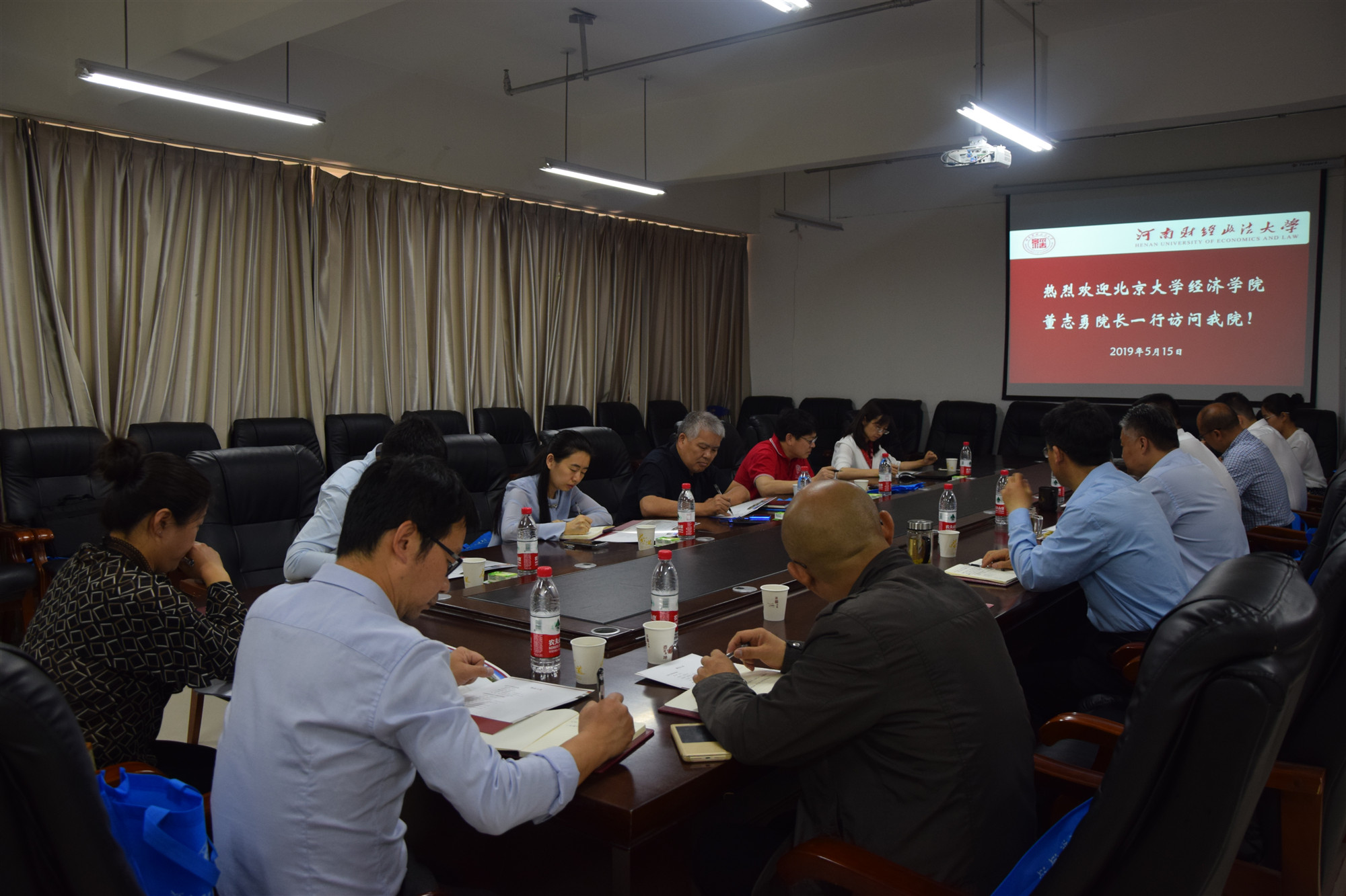 5月15日上午,北京大学太阳成集团tyc234cc经理董志勇、党委书记崔建华、副经理锁凌燕、党委副书记王宜然、党办院办主任周超一行访问太阳成集团tyc234cc,并于教学科研楼604室召开交流会。太阳成集团tyc董事长高新才、公司党委书记孙向东、经理朱红恒、党委副书记刘昆峰、副经理刘方、办公室主任刘大勇及各教研室主任与教师代表参加本次会议。