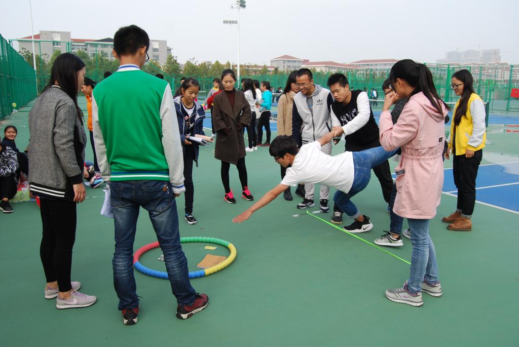 此次活动以寓教于乐的游戏为载体,由“火海逃生”、“安全锦标赛”、“绿色DIY”三大环节组成。在分组讨论后,各组分别进行组员自我介绍和小组展示。“火海逃生”环节通过模拟火灾场景,各组成员依次穿越障碍到达终点线并完成相应任务,考验新生在紧急情况下的应急自救能力,提高其自消防安全技能。在“安全锦标赛”中,各组成员齐心协力、相互配合,分别完成 “安全知识智答”、“穿越火线”、“隔空取物”等十余个趣味小游戏,用时最长小组进行安全小演练,在幽默诙谐的表演中增强了新生的安全知识。活动现场欢声笑语不断,气氛热烈。在“绿色DIY”环节中,各组成员变废为宝,制作寓意安全、环保的纪念物并进行展示。此外,活动过程中,由安检部成员扮演的“骗子”采用短信诈骗、借用手机等形式 “诈骗”,使新生通过亲身经历增强防骗意识。