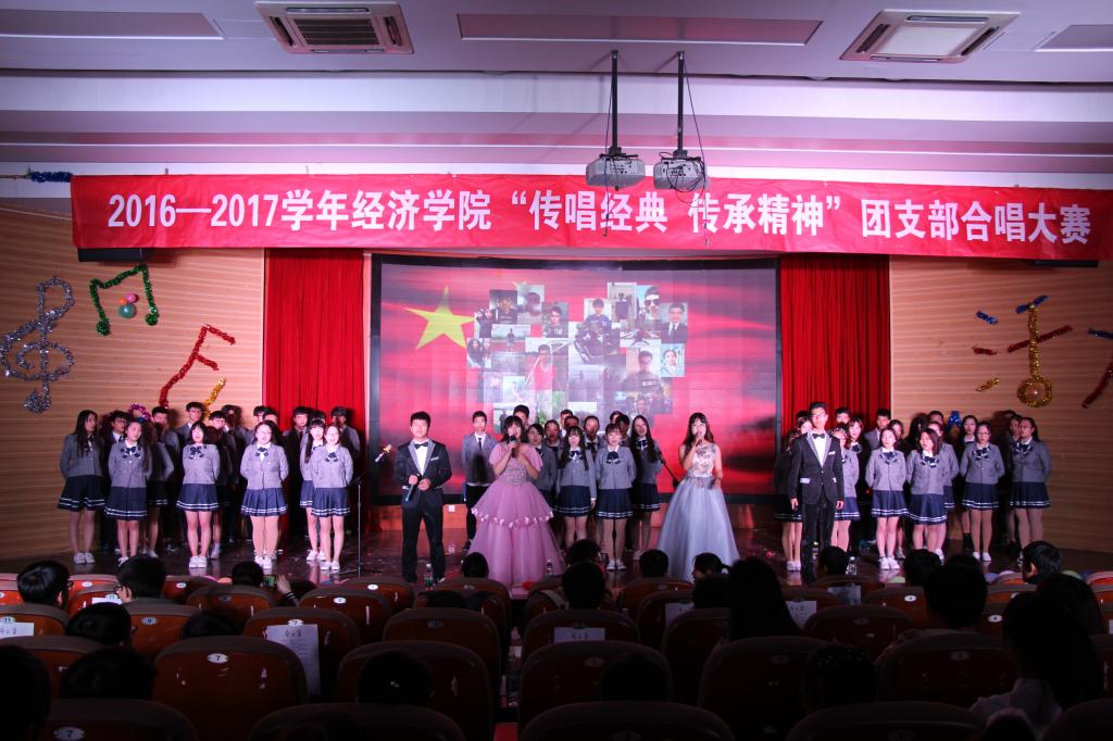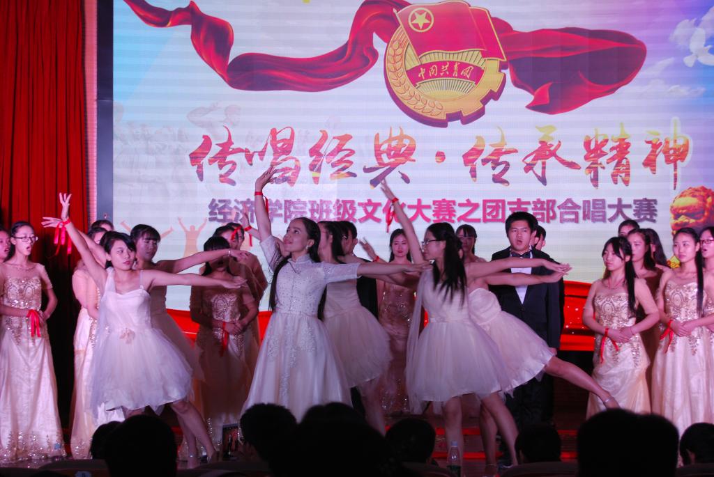本次大赛中,各团支部需演唱共青团团歌和班歌两首曲目。在团歌合唱中,各团支部依次登台亮相,他们昂首挺胸、歌声高亢嘹亮,彰显出青年员工朝气蓬勃、昂扬向上的精神面貌。班歌演唱环节,161203团支部带来的歌曲《仰望星空》,以优美深情的歌声让现场观众沉醉其中,结合手语表演令人耳目一新。紧接着,由151208团支部带来的改编歌曲《金水东路的日子》讲述来到大学度过的时光,清新独特的队形排列,表现出对财大浓浓的情意。151207团支部带来的歌曲《放飞梦想》结合朗诵、舞蹈等形式,凭借气势磅礴的合唱博得了现场阵阵热烈的掌声。《我爱你,中国》、《旗开得胜》、《第一时间》、《红星》等各团支部独具匠心的编排和激情四射的表演,联袂为观众带来了一场精彩的视听盛宴,在回忆和感动中分享着师生对革命先驱的崇高敬意和对祖国的深深眷恋。整场比赛气氛热烈,掌声雷动。最后,比赛由艺术团声乐队带来的歌曲《那些年》再次将比赛气氛推向高潮。经过激烈的角逐,161201摘得桂冠,151208及151205荣获比赛二等奖。