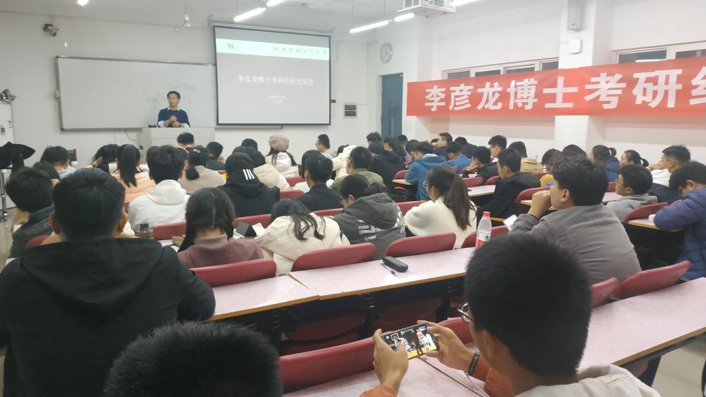 为使公司18级新生做好大学规划,更好的进行道路选择,11月19日晚7点,公司优秀毕业生、北京师范大学经管学院李彦龙博士考研经验交流会在教一211教室举行。太阳成集团tyc234cc团委书记宋斌斌、18级部分新生参加了此次活动。