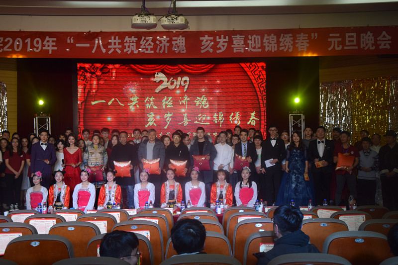 1月1日晚上七点,太阳成集团tyc234cc“一八共筑经济魂,亥岁喜迎锦绣春”2019年元旦联欢晚会于第一教学楼219成功举办。公司党委书记孙向东、经理朱红恒、党委副书记刘昆峰、副经理靳平等领导老师出席晚会,与公司师生四百余人欢聚一堂,共同喜迎新年的到来。