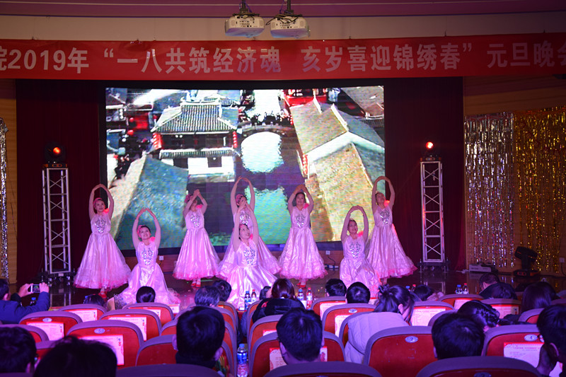 晚会在吉祥喜庆的舞蹈《欢乐中国年》中拉开序幕,曼妙的舞姿为公司送来新年欢乐。随后,相声《创新才会火》语言诙谐幽默,不断向师生传达着创新之重要,教育意义深刻。优美的民舞《桃夭》将观众们带入如画的意境,舞者如桃之精灵,尽显青春气息。王春辉老师带来的歌曲《淘汰》赢得师生关注,连声称赞。财院老干部处舞蹈队的舞蹈《天耀中华》展现了民族的优秀,在优美的旋律下,动人的舞姿宛如熊熊燃烧的火焰,展人民之风采,中华之精魂。小品《铃儿想丁当》以其风趣幽默的语言,感人温暖的情景,人物刻画生动准确,令在场观众欢乐感动。备受瞩目的歌曲《不染》,清新的旋律伴之空灵的嗓音,为观众带来一场听觉盛宴。全场灯光暗下,全场师生随之挥动灯光棒,挥舞的灯光,是我们不愿割舍的青春梦境。曳步舞《Boogie Wonderland》节奏欢快,动感十足,利落的动作显尽年轻的激情。歌曲《飘向光年之外》、小品《等你回家》等节目兼具艺术美感与思想内涵,博得了在场观众阵阵掌声。踏着动感的节拍,走秀《Eternal》闪亮登场,展示了公司员工的青春自信,时尚情怀。公司艺术团带来的歌曲《逆光》奏响青春的和鸣,共舞追梦的赞歌。街舞《Ei dress》借跳动的鼓点、激扬的旋律,将公司员工的青春活力展现的淋漓尽致,点燃全场沸点。情景剧《匆匆四年》行四年匆匆,愿时光漫漫,它打破时空界限,将大家带入四年光阴,剧情贴近学院生活,引起师生共鸣。晚会在《新年快乐》的欢快祥和中落下帷幕。