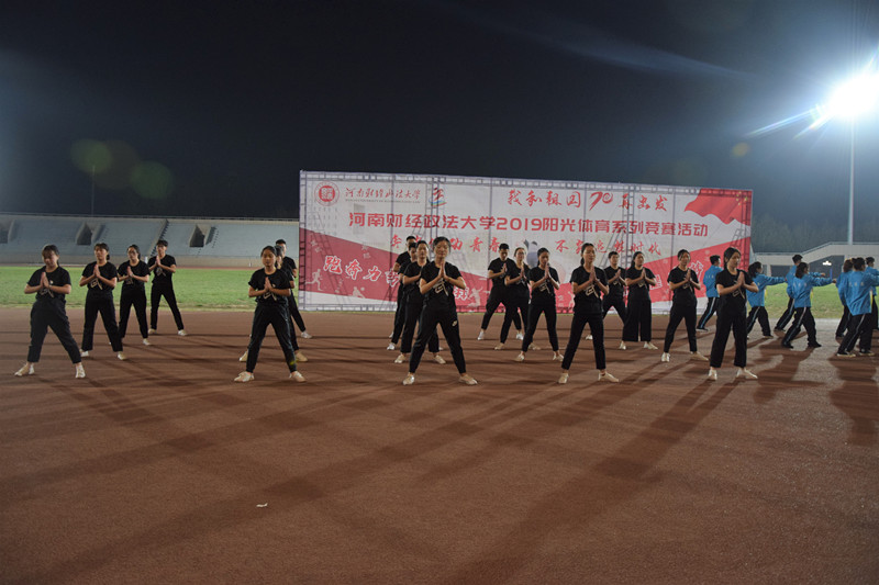 干净利落的动作、高度统一的配合,啦啦操和跆拳道比赛选手充满青春朝气与活力,舒缓大方、柔中有刚的动作,展现了武术操、太极拳运动员积极向上的青春风采。