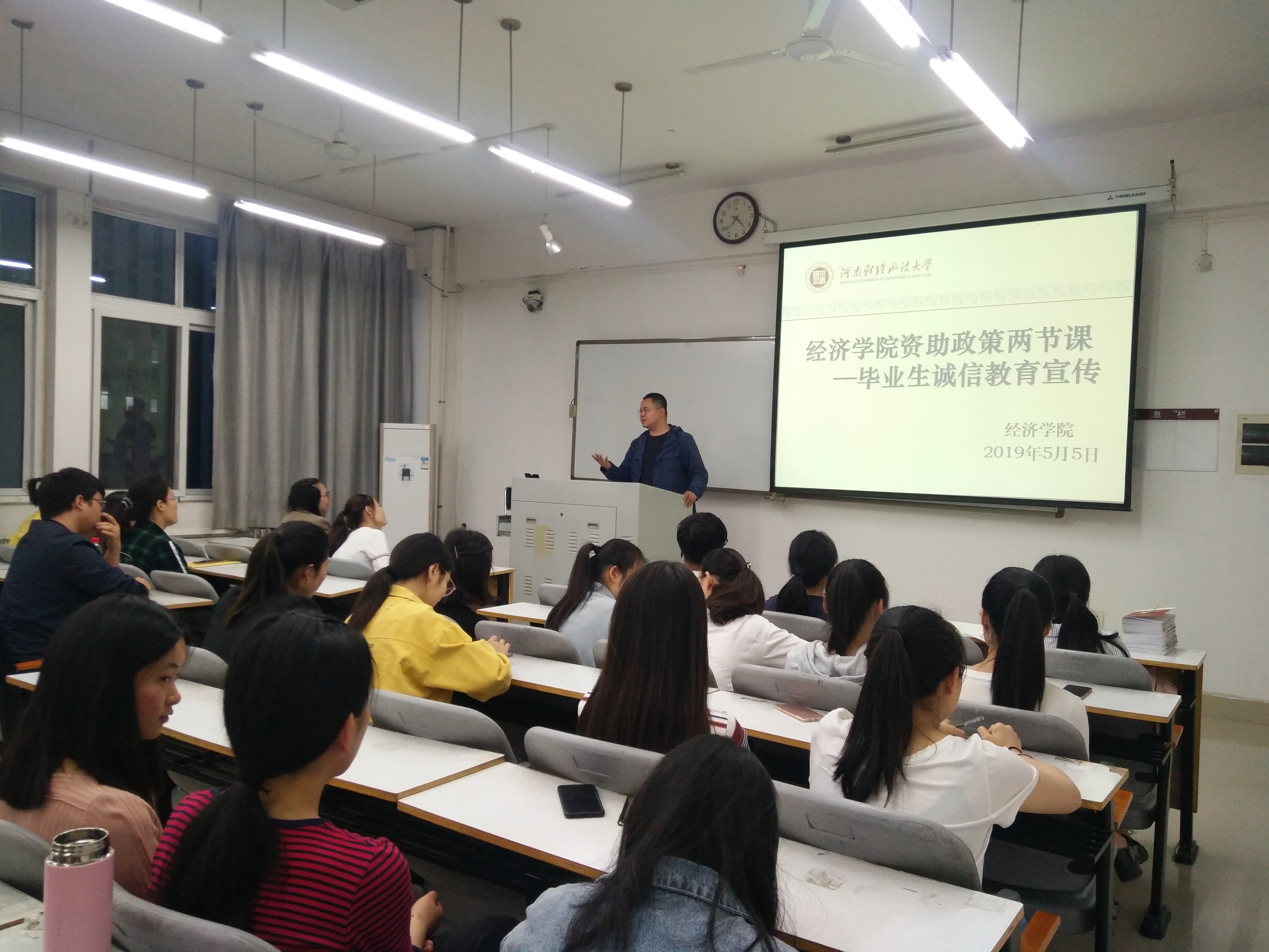为贯彻落实国家资助政策宣传工作,使申请国家助学贷款的毕业生更加清晰地了解国家资助政策,5月5日晚19点,公司在教一404教室开展了“资助政策两节课—毕业生诚信教育宣传”工作。由公司资助专管员张荣埔老师与15级助学贷款毕业生共同参加。