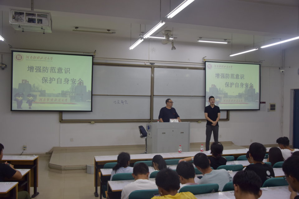 保卫处处长魏保平、团委副书记刘洋出席会议,就“增强防范意识,保护自身安全”进行讲说。魏处长首先从预防电信诈骗讲起,分列了网贷的正确处理方式、手机丢失后的做法等,又为新生讲解了短信诈骗,微信诈骗,电话诈骗,贷款诈骗等一系列电信诈骗方式。紧接着魏处长以消防安全、防传销和毒品、防宗教渗透为主要内容解释了与老员工生活息息相关的安全事项。
