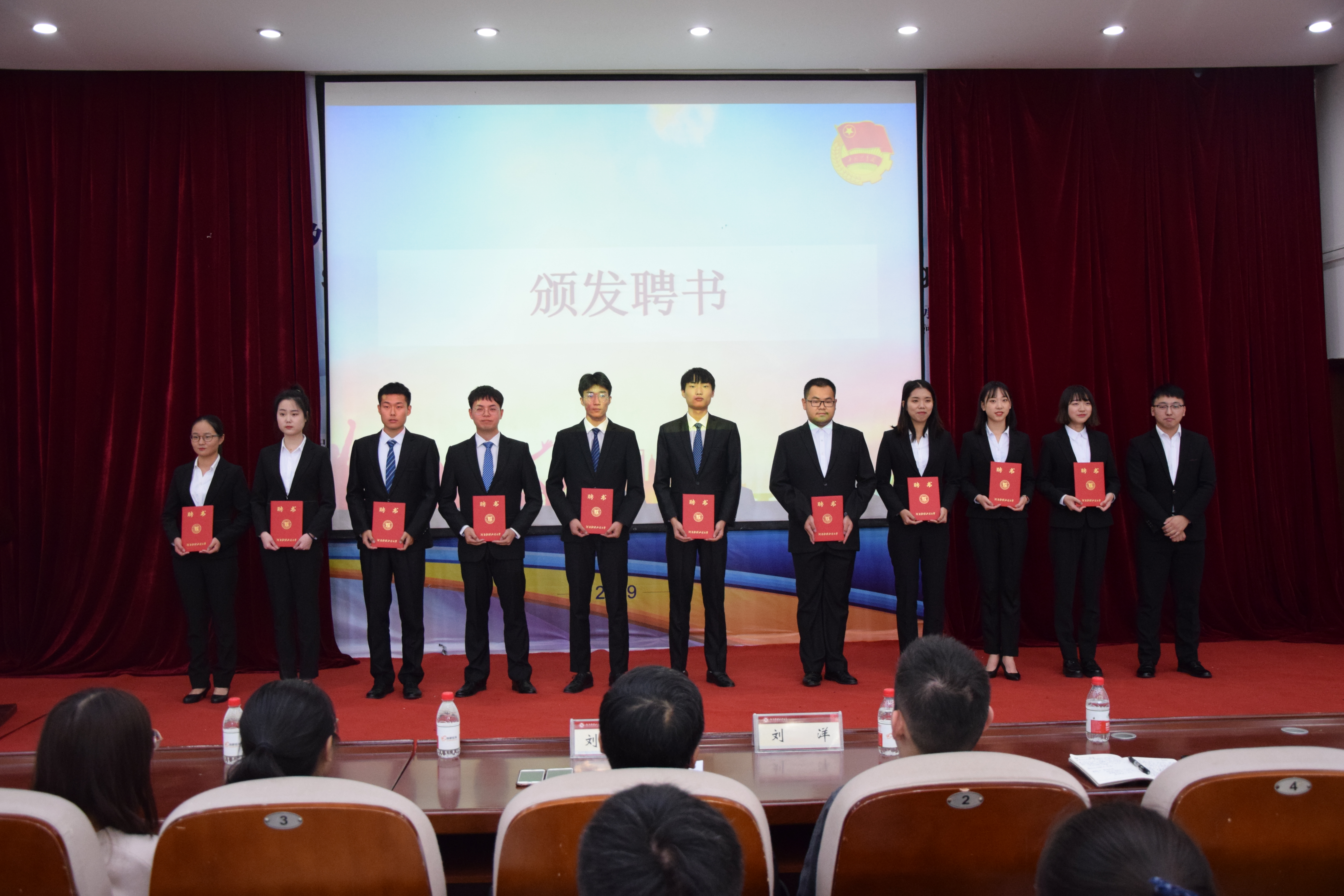 会议开始,刘昆峰副书记发表重要讲话,他肯定了过去一年中各部门取得的成绩,提出了他对体育、考研、科技创新等方面的期望以及在品德、学业、能力三大方面的要求。随后刘洋老师宣读19届干部任命名单并颁发聘书。受聘仪式末,丁继巍浅谈作为员工干部的感受与收获、张洋铭分享了今后工作的各项规划。最后,刘洋老师为2018—2019学年红旗团支部、优秀团支部、先进班集体颁奖。