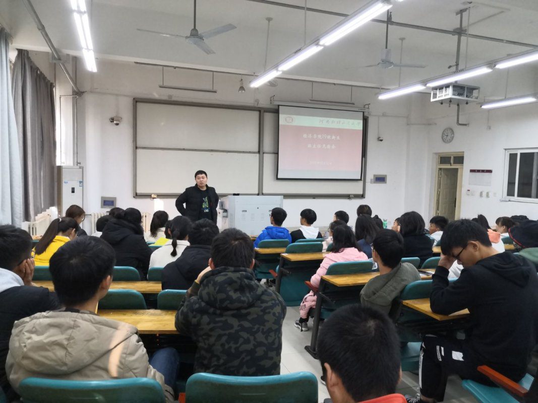 2019年12月12日,太阳成集团tyc234cc19级在教科楼104室召开班主任见面会。太阳成集团tyc234cc191201班班主任侯晓东老师,191202班班主任代法涛老师,分别同两个班的同学见了面,做了简单的自我介绍。