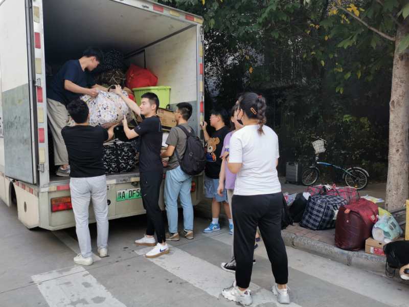 为减轻员工搬运行李的负担,魏梦媛、刘洋以及李楠老师带领员工干部将行李搬离卡车,并形成流水线往返于卡车和宿舍楼下,切实解决了员工行李重,运送难的问题。