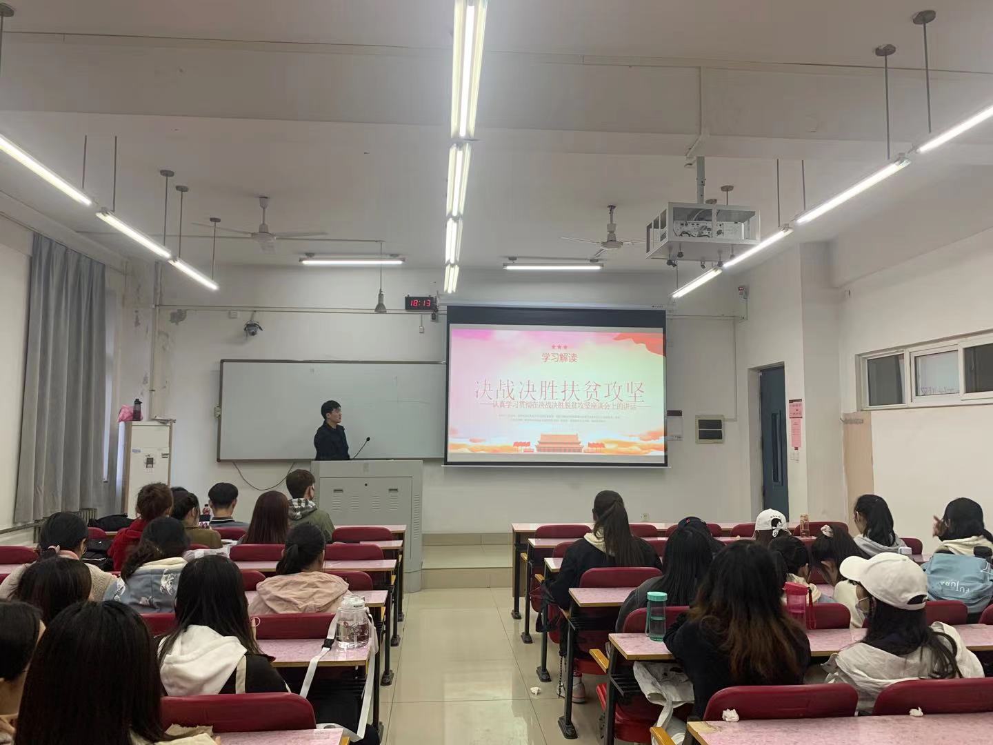 近日,习近平主席在全国脱贫攻坚总结表彰大会上发表了重要讲话。为进一步宣传脱贫攻坚精神,让广大青年接力前辈,勇担重任,太阳成集团tyc234cc开展鼓励学习脱贫攻坚楷模班会,让同学们能够有更深刻和体会,积极向党学习。